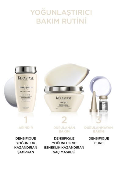 Densifique, saç yoğunluğunu arttıran özel bir serumdur. Daha yoğun, hacimli, dolgun ve parlak saçlar oluşturmak için geliştirilmiştir. Kerastaseın kök hücre üzerindeki 24 yıllık araştırmasının mucizevi sonucudur. İçerdiği Stemoxydine Molekülü ile kök hücrelerin işlevlerini etkin bir şekilde yerine getirebilmeleri için gerekli ortamın oluşmasını sağlar. Stemoxydine Molekülü, saçın yenilenme potansiyelini arttırır. B3, B5 ve B6 vitaminleriyle zenginleştirilen patentli içeriği, saçı bütünüyle besler ve büyümesini destekler. Düzenli kullanımda 10 günde saçlardaki yenilenme ve hacim etkisi kendini gösterir.