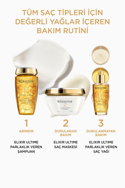 Le Bain şampuandan sonra uygulayın. Daha sonra normal saçlar için L'Huile Originale, boyalı saçlar için L'Huile Rose saç yağı adımına geçin.